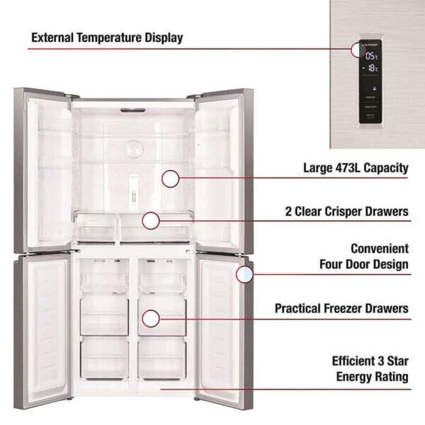 Big on space and big on value, this French door fridge from Akai Home looks beautiful thanks to its sleek fingerprint-resistant stainless steel finish. The convenient French door design makes it so easy to access your food, while the spacious 473L capacity is suitable for families.