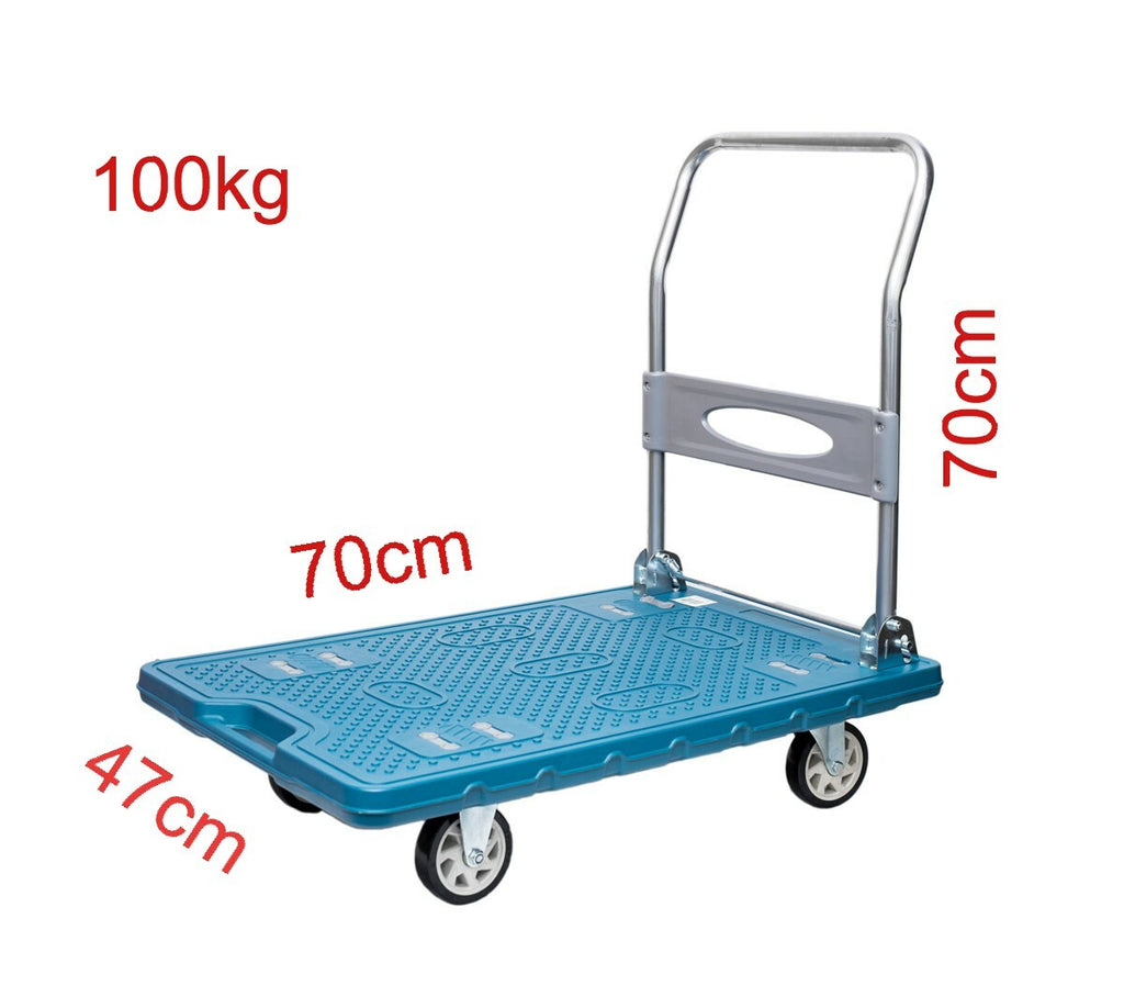Strong, reliable and more importantly, convenient! This heavy duty platform trolley boasts a 100kg load! Easy swivel back wheels, which are durable and build to withstand industrial conditions. With an easy fold functionality, this trolley can easily fold and stored away. The platform itself is made from heavy duty PVC with a textured face to ensure grip.