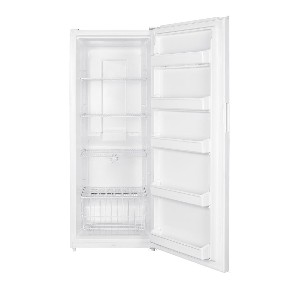 This freezer comes with height adjustable wire shelves and one wire drawer which allows for practical food storage and separation.