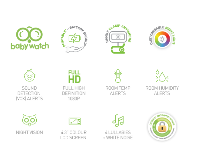 The “walkie talkie” function enables parents to talk to and soothe their baby remotely with the monitor, which also comes with a selection of popular lullabies to play, including white noise.