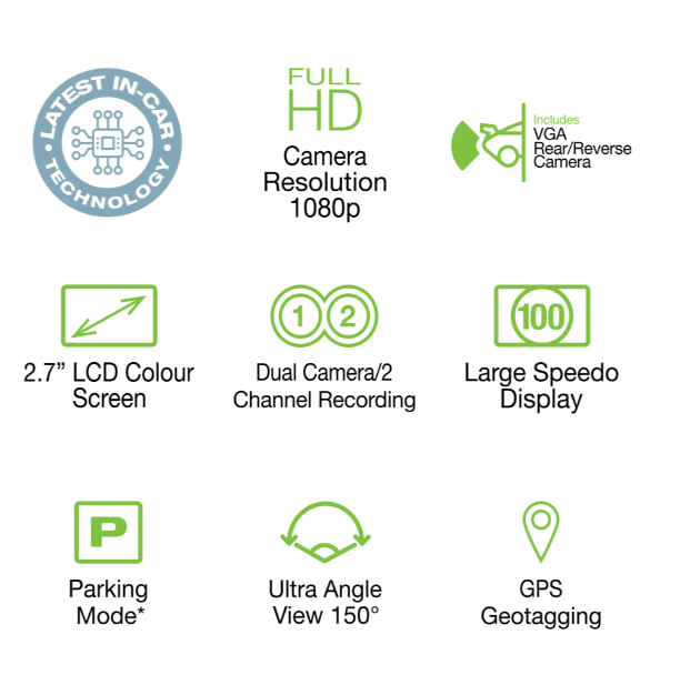 The feature-packed Dash cam is designed for a variety of road users and with a large speedometer display for accurate speed.