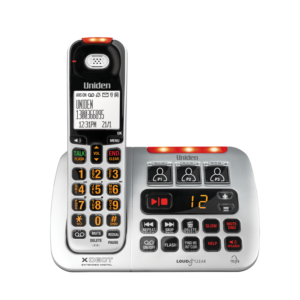The SS E45 is equipped with an Integrated Digital Answering Machine with Slow Playback, ensuring you never miss that important call. The XDECT Digital Cordless Phones offer Extended Digital Coverage by utilising a Diversity Antenna System for Optimal Reception and Clarity – by mitigating multi-path errors. It also features a High Gain Antenna for greater range and to eliminate drop our areas in your home. The SSE45 is equipped with Text to Speech (TTS) Technology†. The Extra Loud 50dB volume ringer & Large Screen Buttons are ideal for Hearing Loss / Elderly people, Visual Problems / Low Vision, Noisy homes or workplaces.