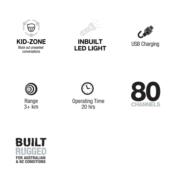 The UH45 series introduces a new Kid-Zone feature to UHF communication – allowing parents to block out unwanted conversations so kids can use the UHF radio with family and friends. Another handy addition to the UH45 Series is the introduction of an inbuilt LED Light, ideal for camping.