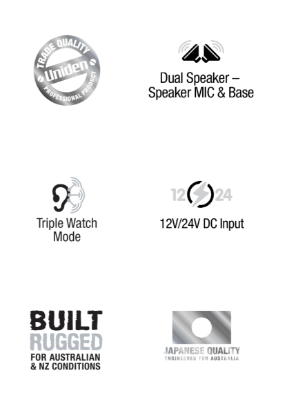 Uniden’s innovative one touch instant replay allows you to record and replay up to 19 minutes of recently received communications … meaning you won’t miss any important transmissions. The UH6160 is also equipped with Triple Watch which will continuously monitor the instant priority channels stored along with your current channel logged on ensuring you can monitor three channels at once.