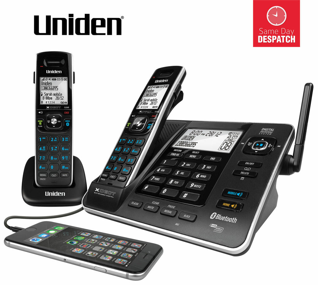 Introducing the Most Advanced Home Smart Phone System in the market. Sporting Bluetooth® connectivity with USB Charging Port. This new series from Uniden now enables you to dial and receive mobile calls on the cordless handset for convenience and versatility as well as charging your Mobile Phone simultaneously.