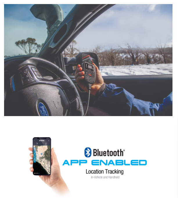 The XTRAK 80 Pro in vehicle UHF radios are App enabled – giving you the ability to location track on your radio through the XTRAK Bluetooth App. What makes the Uniden XTRAK so special is the location sharing can be done with the Uniden range of XTRAK Pro UHF handheld radios so location sharing is limitless and not just in a vehicle.